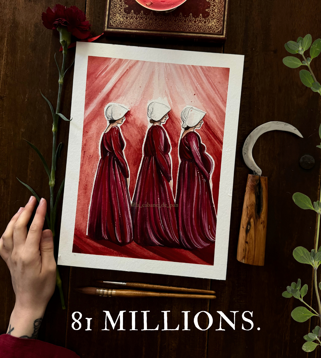 Cette oeuvre, qui rend hommage à l’esprit de l’oeuvre La Servante Ecarlate, est en réponse à ce chiffre alarmant.