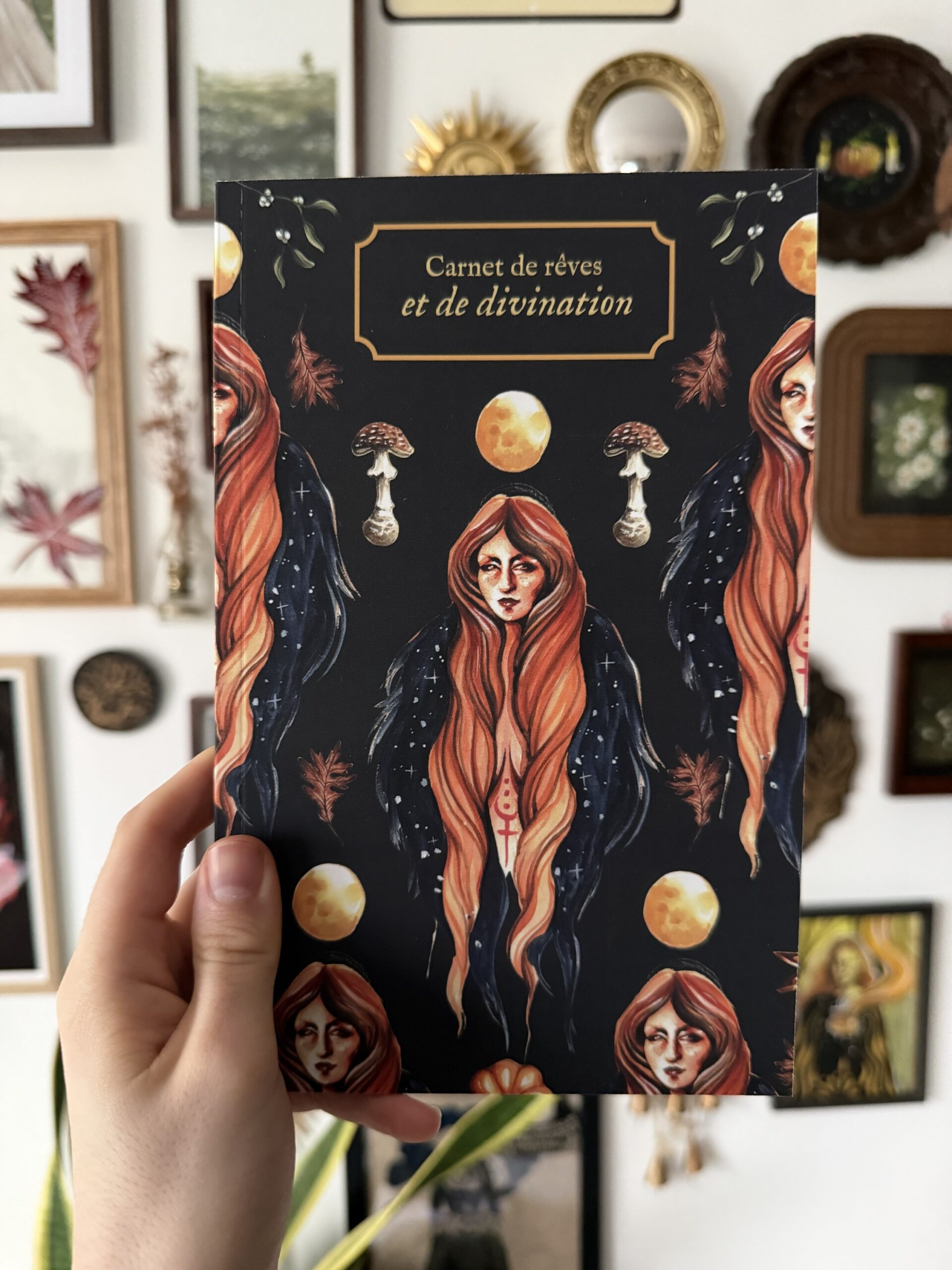 Plongez dans la magie des séances de cartomancie et d’oniromancie avec ce délicat carnet de 80 pages, spécialement dessiné pour vous, notamment avec “Pleine Lune en Lion”, une illustration centrale pour cette période.