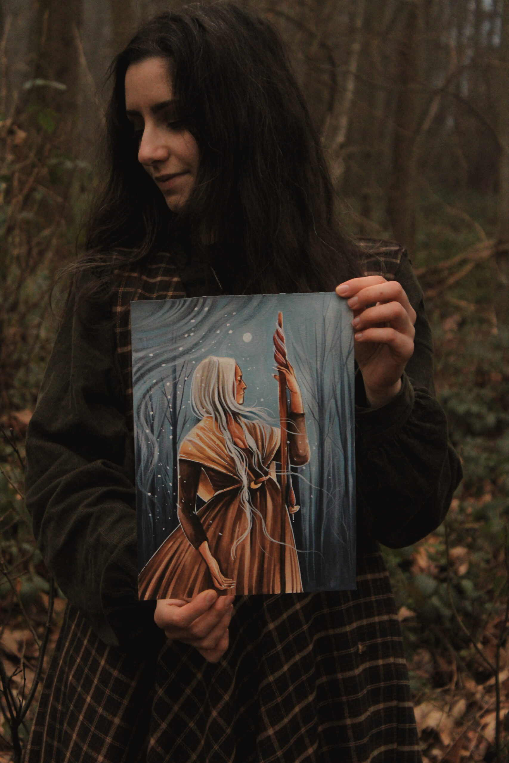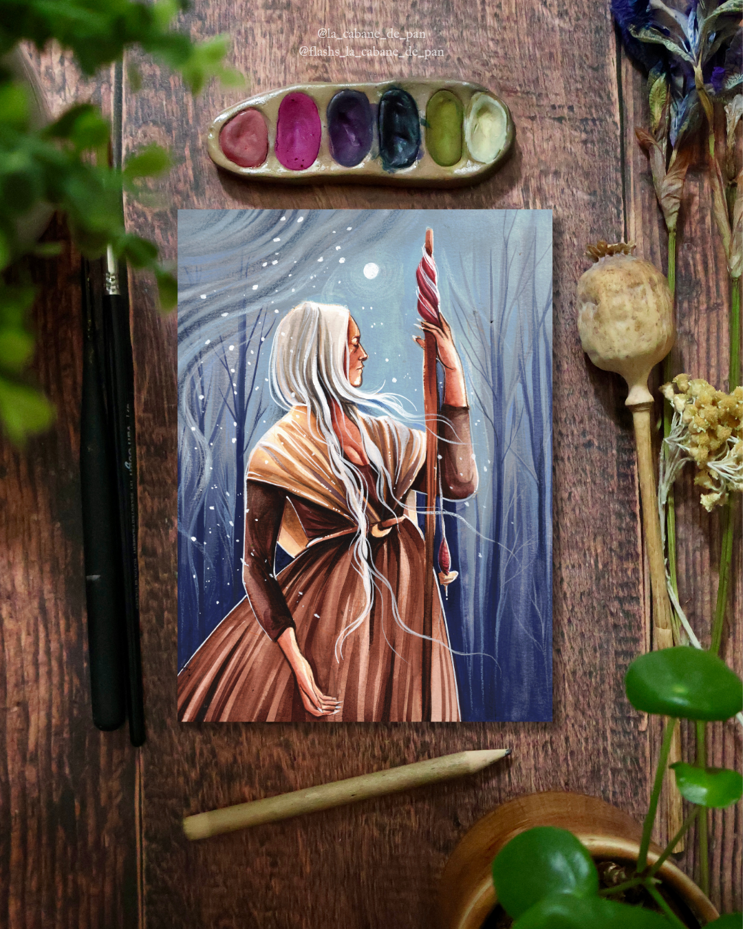Plongez dans la magie des divinités alpines et de la sorcellerie du froid avec “Perchta”, une oeuvre dédiée à cette déesse.